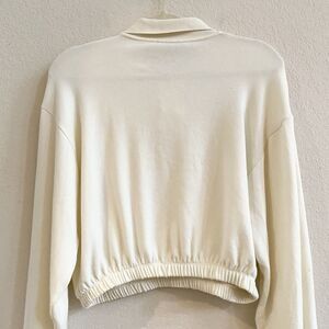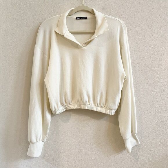 Zara Creamy Ivory Cropped Cotton Blend Longsleeve Sweater Size Small