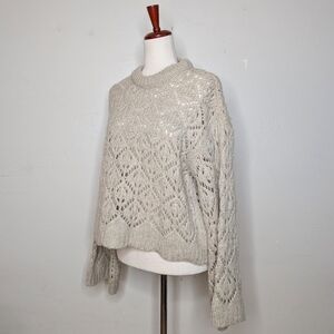 Zara Crew Neck Bell Sleeve Cropped Crocheted Knit Sweater Size Medium