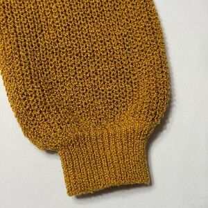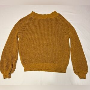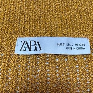 This Zara sweater in a vibrant yellow mustard hue features a classic crew neckline and full-length sleeves. Crafted with a medium-weight knit, it offers a timeless design perfect for cool weather. The ribbed trim adds a touch of elegance to this simple yet stylish piece.