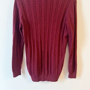 Excellent condition. Maroon cable knit sweater. Crew neck. Long fitted sleeves.