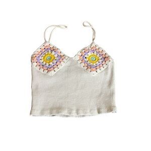 Zara Crochet Granny Square Ribbed Cropped Top Size XS/S