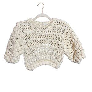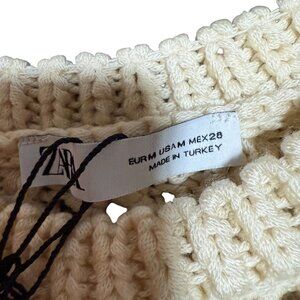 Zara Crochet Knit Open Back Frill Cropped Top Women's Size Medium Cream Winter