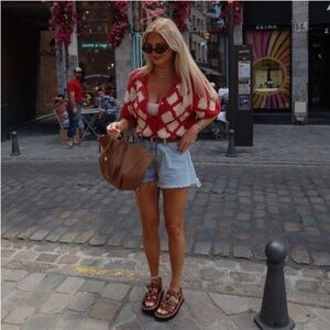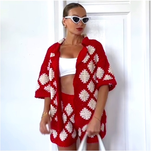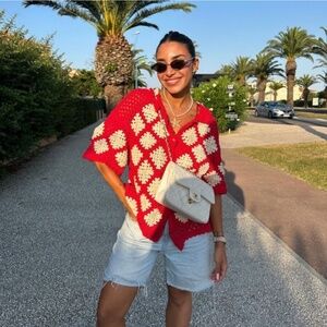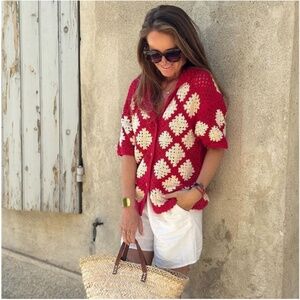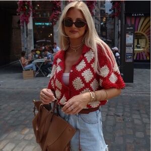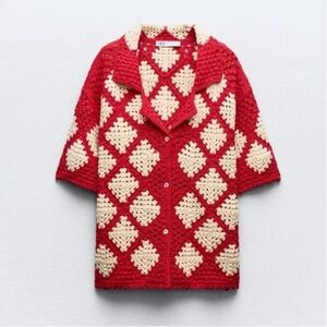 Zara Crochet Knit Polo NWT