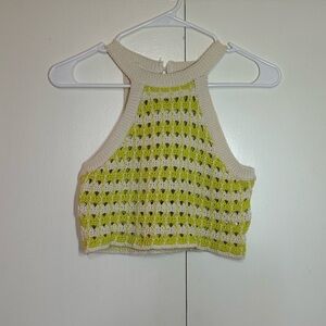Zara Crochet Tank Top Green White Size 9-10