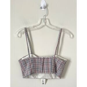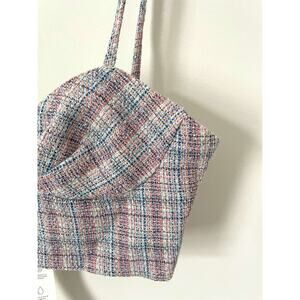 Zara Crop Plaid Tweed Top Pink Blue Size Small NEW