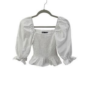 Zara Crop Top Elastic Bodice Puff 3/4 Sleeve -SZ Small