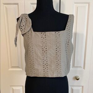 Zara Crop Top Prairecore Eyelet Sleeveless Shoulder Tie Khaki Green Size Medium