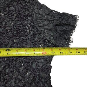 Design details: Textured floral rope and lace overlay, semi-sheer base, scalloped eyelash edges at hem and sleeves, cropped silhouette, whimsigoth, gothic