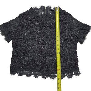 Zara Crop Top Womens Medium Black Lace Mock Neck Whimsigoth Scalloped Trafaluc