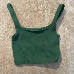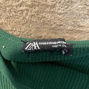 Zara Crop Top Womens XS Emerald Green Ribbed Tank Short Sleeveless Stretch