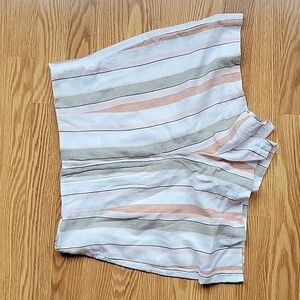 Stylish striped crop top and shorts set. Features pastel stripes in pink, green, and cream.