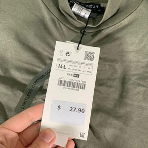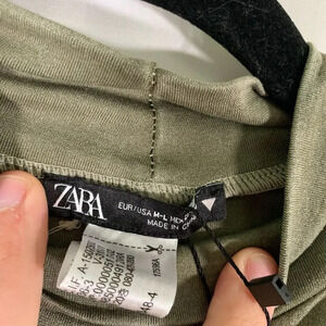 Zara Cropped Blouse Women's Medium Green Tie Front Long Sleeve Open Front New