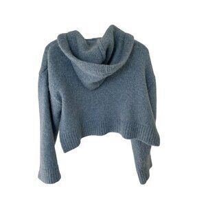 Zara Cropped Blue Knit Zip Hoodie With Side Vent Slits