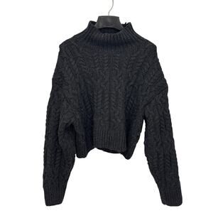 Zara cropped cable knit sweater in dark gray. This quality made cropped sweater is so comfortable and stylish.