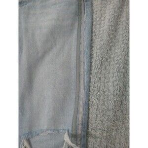 The Zara Cropped Distressed Stripe Side Jeans in size 6 are a stylish addition to any woman's wardrobe. Made from a comfortable cotton blend fabric with a light wash, these jeans feature a blue striped pattern and a regular fit. The cropped style and bohemian theme give them a trendy and unique look, perfect for all seasons. With a zip and button closure, these jeans are both fashionable and practical for everyday wear.