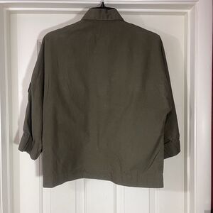 Zara Cropped Jacket Womens Size XS Green Pullover Half Zip 3/4 Sleeve Patches. Good Preowned Condition.