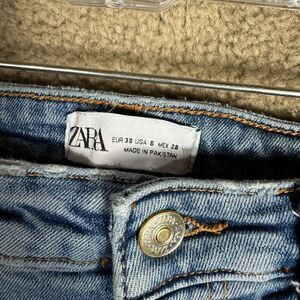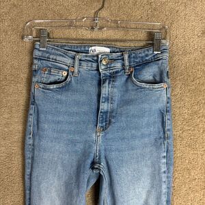 Zara Cropped Jeans Womens Size 6 Blue High Rise Denim Distressed Straight Leg