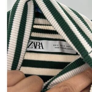 Zara Cropped Knit ribbed green white turtleneck top fall staple size small