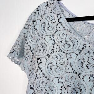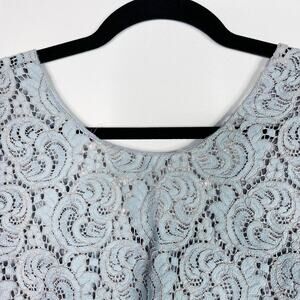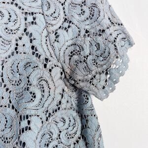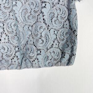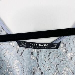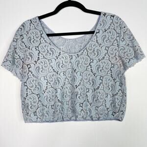 Zara Cropped Lace Short Sleeve Sheer Blouse Top Blue Small Scoop Neck Scoop Back