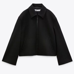 Zara Cropped Loose Fitting Blazer Jacket, Black, Size S, NWT