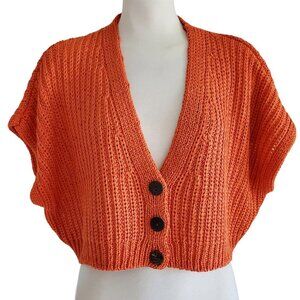 Zara Cropped Orange Knit Sleeveless 3 Button Vest / Cardigan Size S