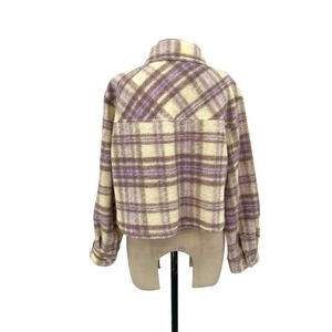 Zara Cropped Plaid Jacket Shacket Purple Cream Size Large