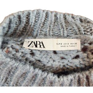 Zara Pointelle Knit Cropped Sweater in Blue Women's Small S