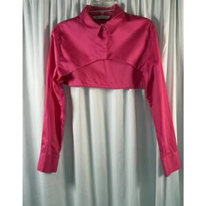 Zara Cropped Poplin Long Sleeve Shirt, Pink Fuchsia, Sz: L, 83-38