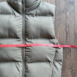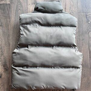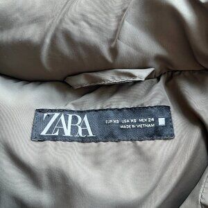 Zara Cropped Puffer Vest in a neutral taupe hue. Designed in a flattering quilted, sleeveless silhouette, this size XS vest is the perfect outerwear layer for fall and winter. Features a zip front closure, high mock neckline, zip pockets, and trendy cropped fit that pairs beautifully with high-rise jeans, activewear, or loungewear.