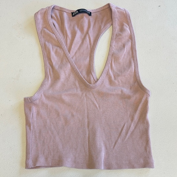 This is likely use, with minimal wear and tear, overall still in great condition! This is a V-neck croft razorback tank top by the brand Zara in a size medium! It comes in a gorgeous, deep blush, pink color! Comes from a non-smoking household.