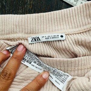 Zara Cropped Ribbed Button Sweater Top Small Beige Neutral Minimal Fall Layer