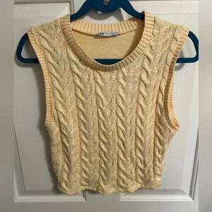 Zara Cropped Sleeveless Sweater Cable knit Vest Women’s Yellow Size Large
