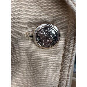 Zara Cropped Tan Denim Jacket Large Trench Military Boho Double Breasted Short