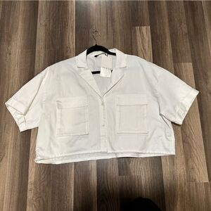 Zara Cropped White Oversized Utility Shirt XL. NWT