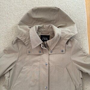 Zara Cropped or Waist-length Trench Jacket Coat With REMOVABLE Hood Parka