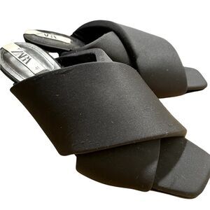 Zara Cross-strap Squared Toe Padded Black Kitten Heel Slides Size 41
