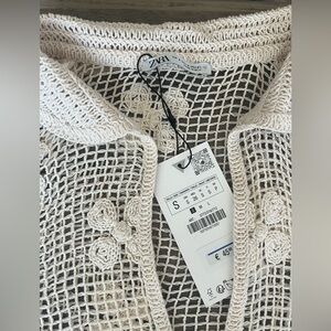 Zara Crotchet Cream Cardigan Size Small Floral Long Sleeve