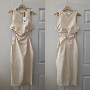 Zara Cut Out Slim Midi Cream Size M NWT Blogger Favorite