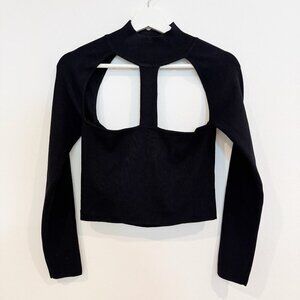 Zara Cutout Open Mock Neck Long Sleeve Knit Sweater Top Black Minimalist Large