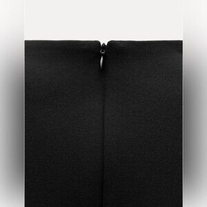 Elegant black sleeveless dress featuring a faux fur hem. Perfect for a chic look.