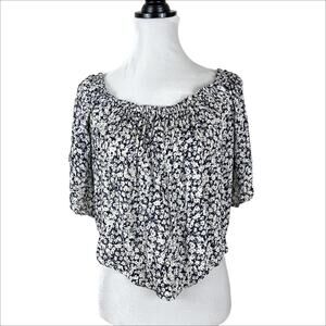 Zara Daisy Floral Short Sleeve Cropped Top Blue Size Medium