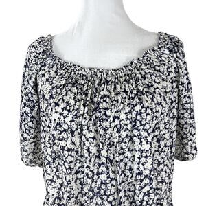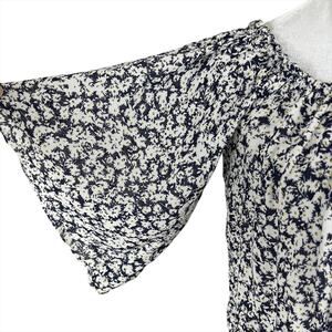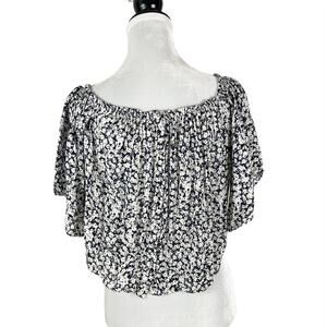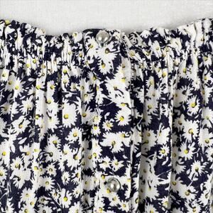 Zara Daisy Floral Short Sleeve Cropped Top. Dark blue with white and yellow daisy print. Flowy fit. Elastic at neck. Button down detail in back. Size medium. Material/care tag has been cut. No flaws.