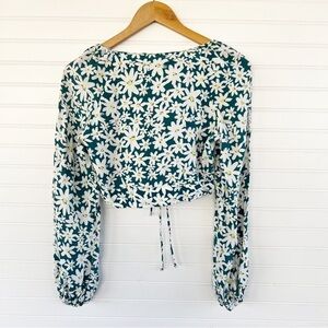 Zara Trafaluc Daisy Print Long Sleeve Crop Top in Floral Green.