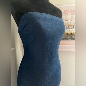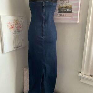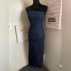Chic dark blue denim maxi dress by Zara. Sleeveless design. Perfect for versatile styling.