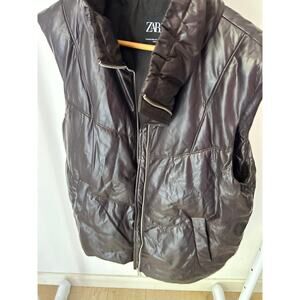 Zara Dark Brown Faux Leather Puffer Vest Size XS-S