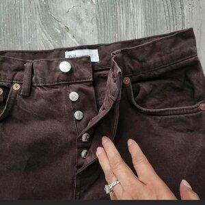 Zara Dark Brown Straight Leg Denim Jeans with Button-Fly Women Size 4