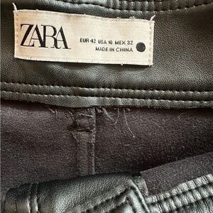 Chic dark faux leather trousers. Perfect for a trendy look.