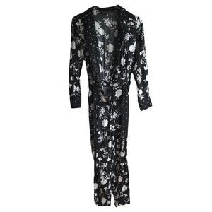 Zara Dark Floral Print Jumpsuit Size XS Long Sleeves V-Neck Going Out Party Wedding Guest Outfit