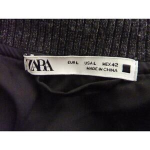 Zara Dark Gray Black Plaid Zippered Bomber Jacket Mock Turtleneck Large