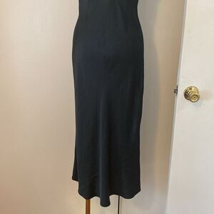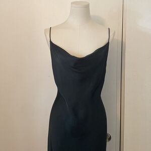 Beautiful Satin dress in a dark forest green that looks almost black, super sultry